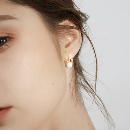 Rose Gold and Silver White Pearl Dangle Huggie Hoop Earrings