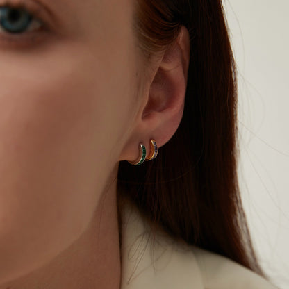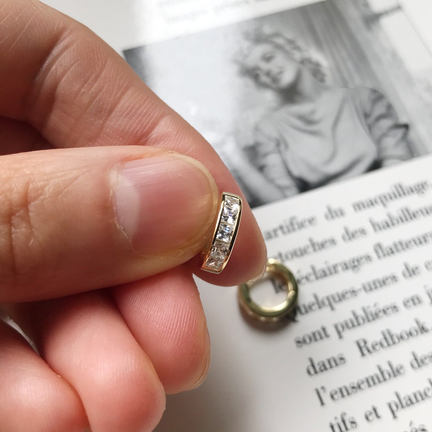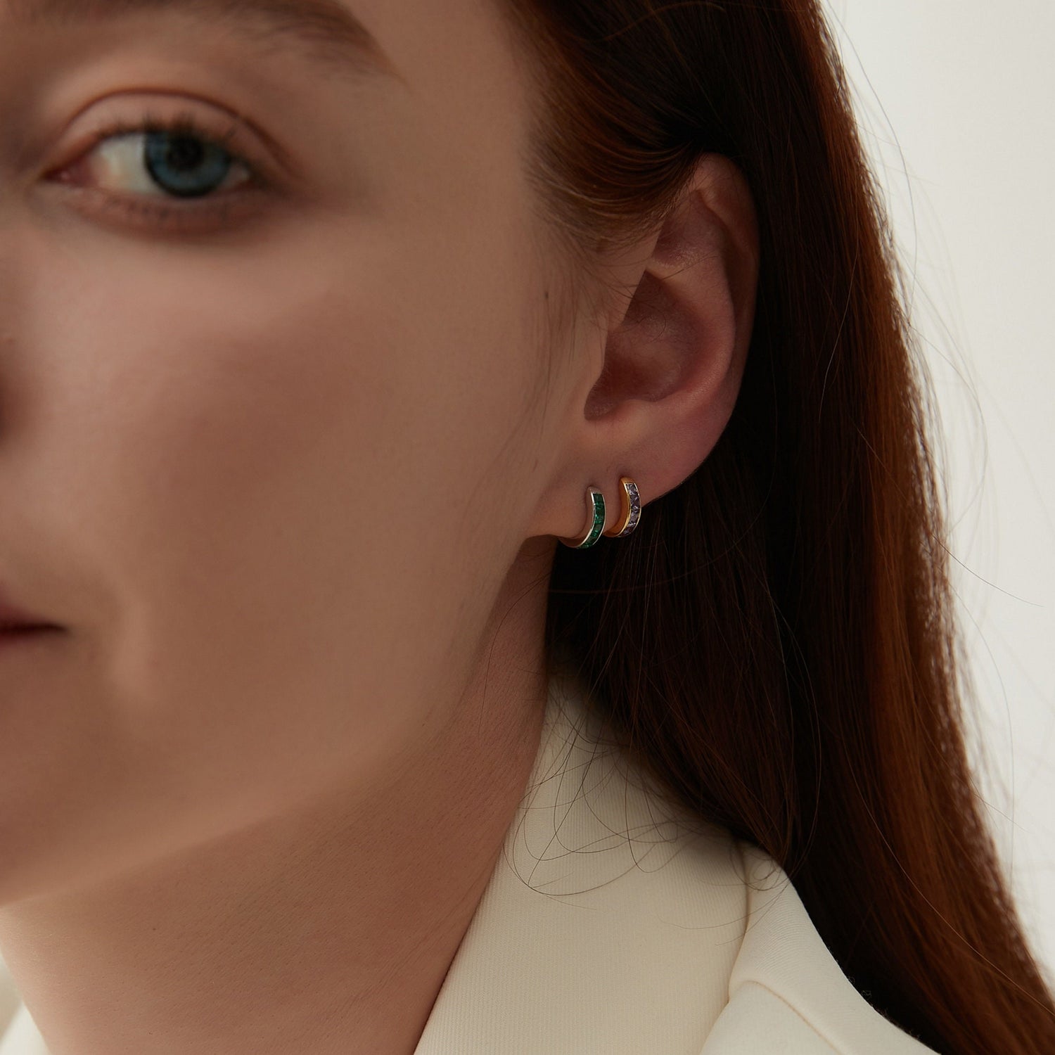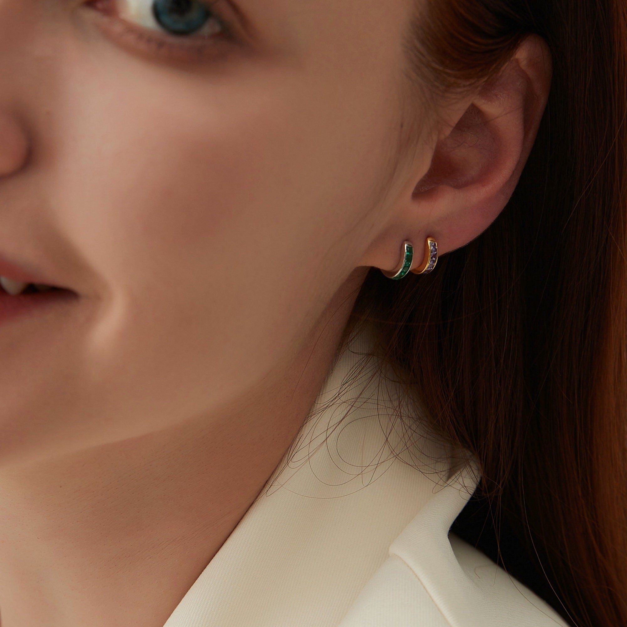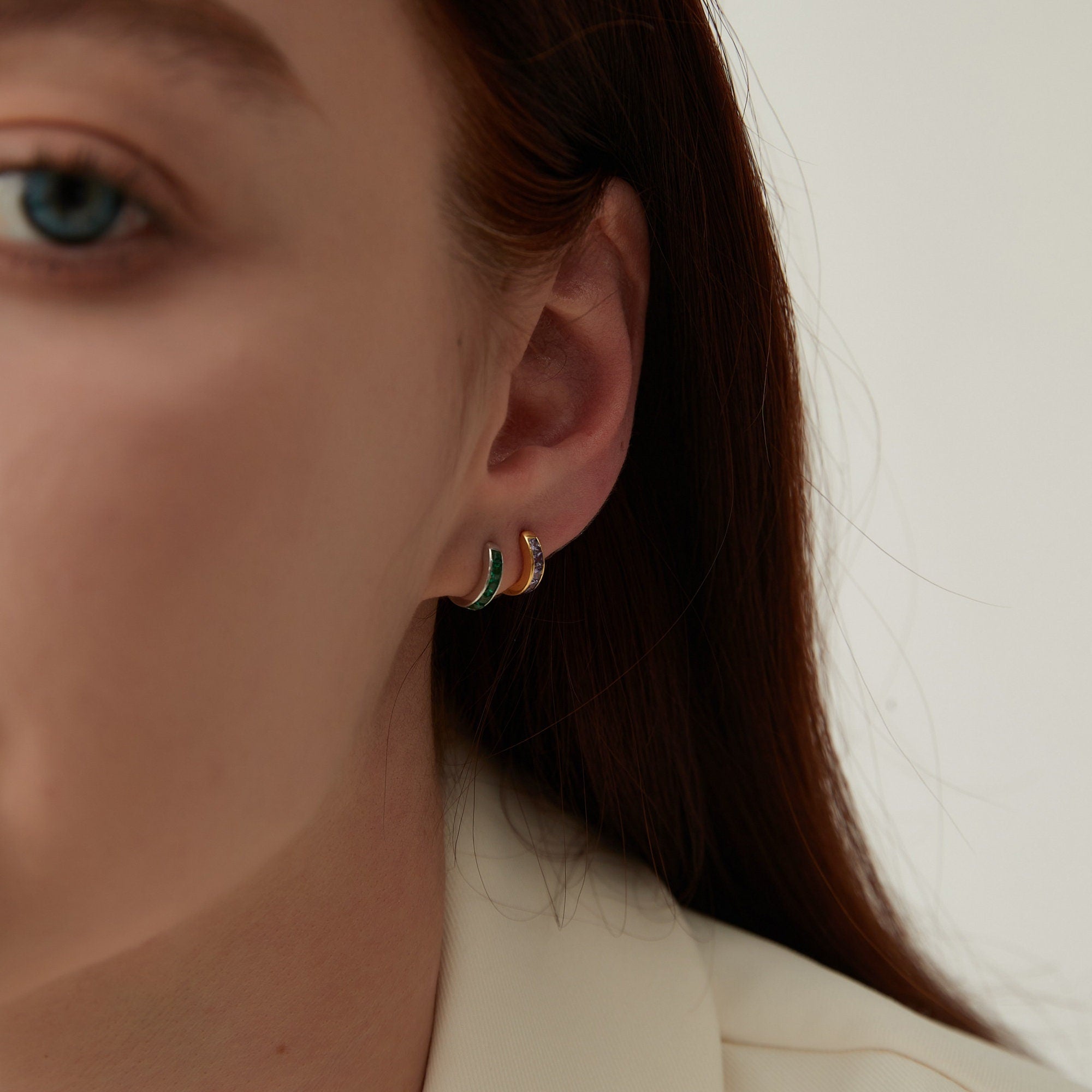 Pendientes de aro con circonitas cuadradas, tanto finas como gruesas, realizados en plata bañada en oro de 18k. Combinan con todos tus outfits y se pueden llevar en cualquier ocasión.