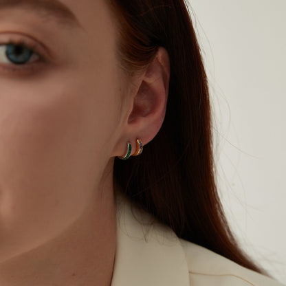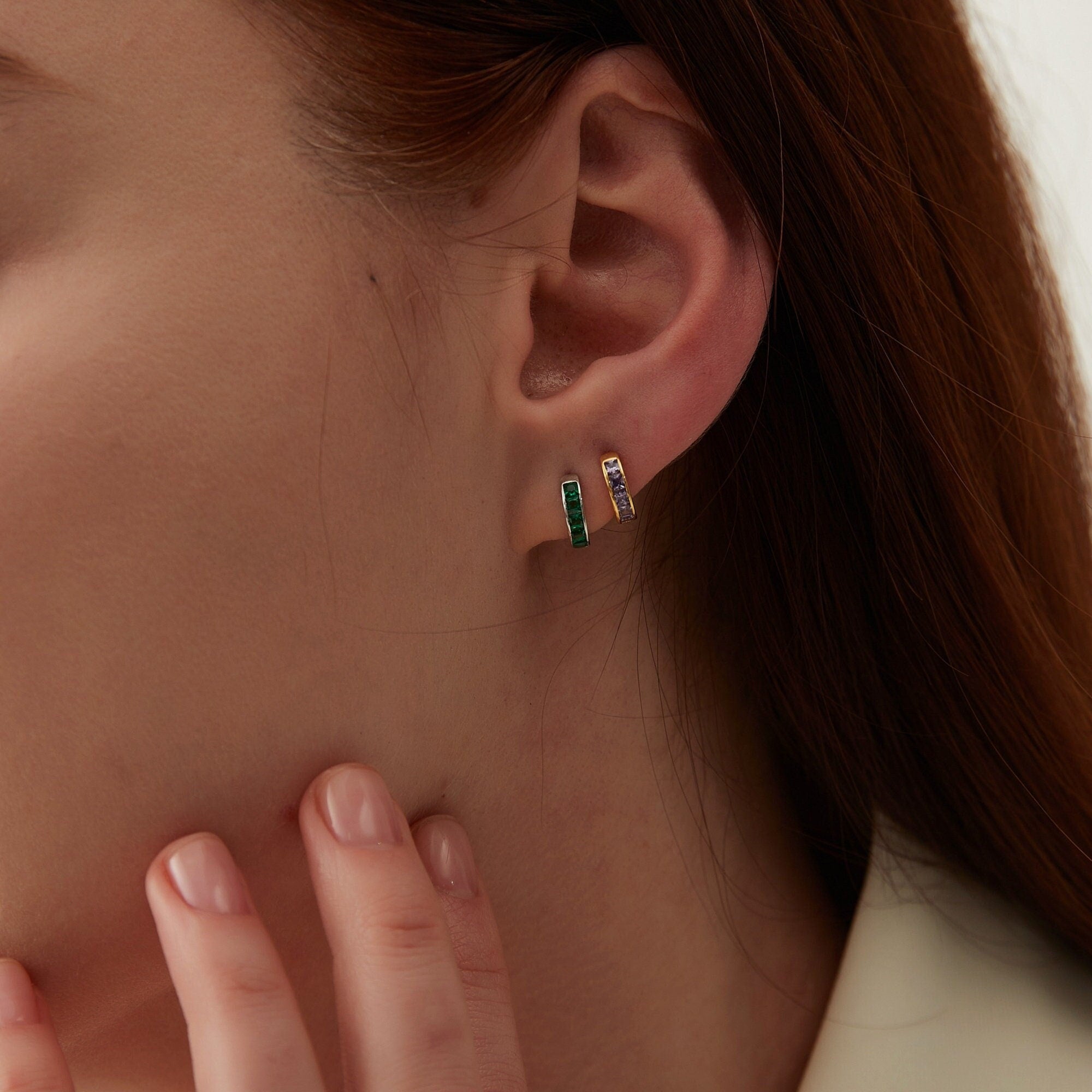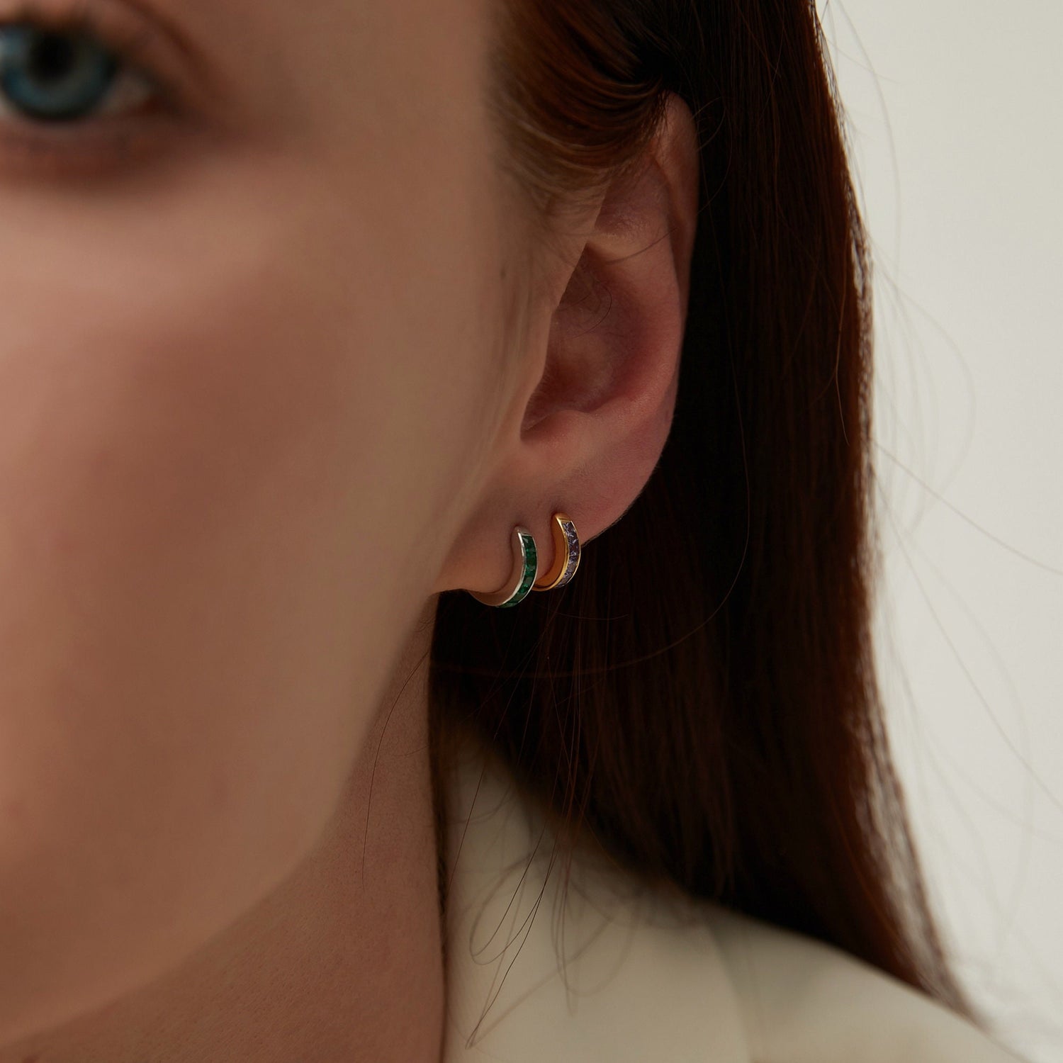 Chunky Gold and Silver Square Gemstone Huggie Hoop Earrings