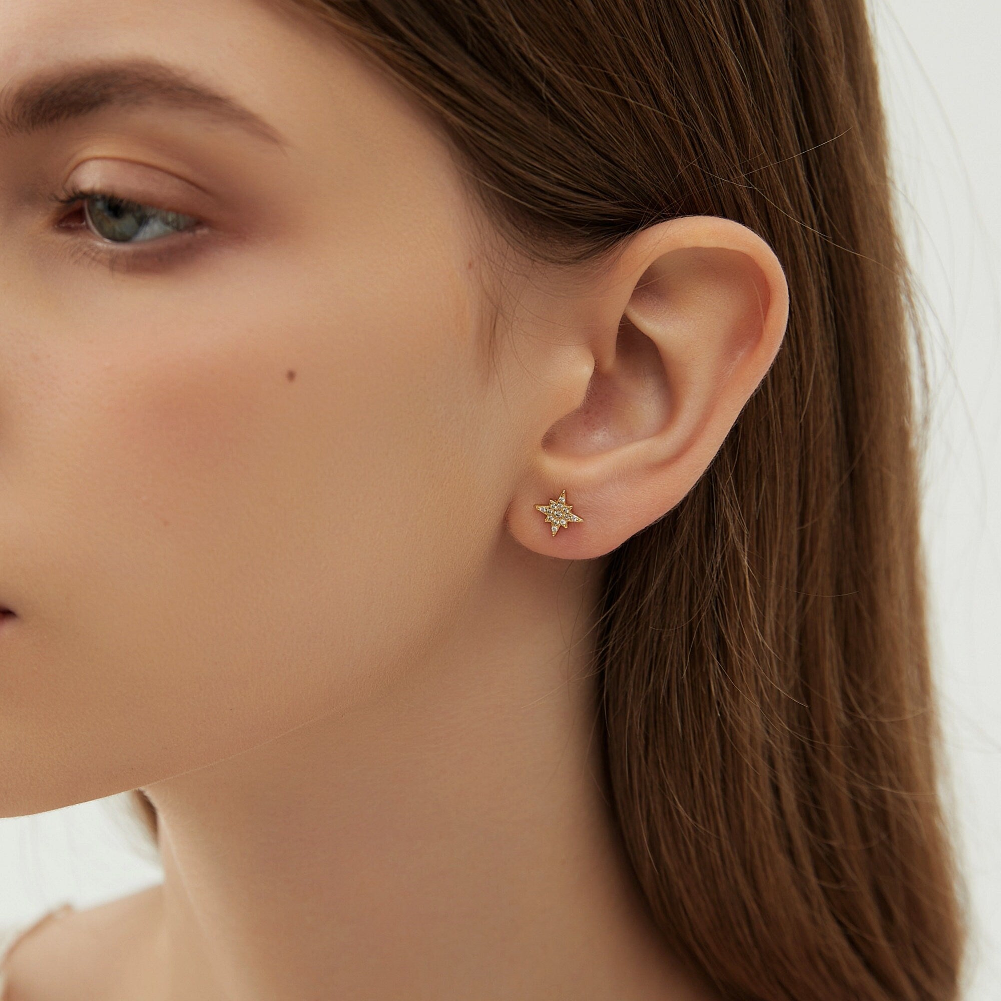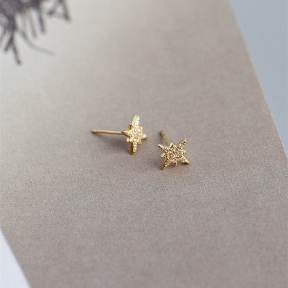CZ North Star Studs Earrings, Minimal Gold or Silver Star Tragus Earring