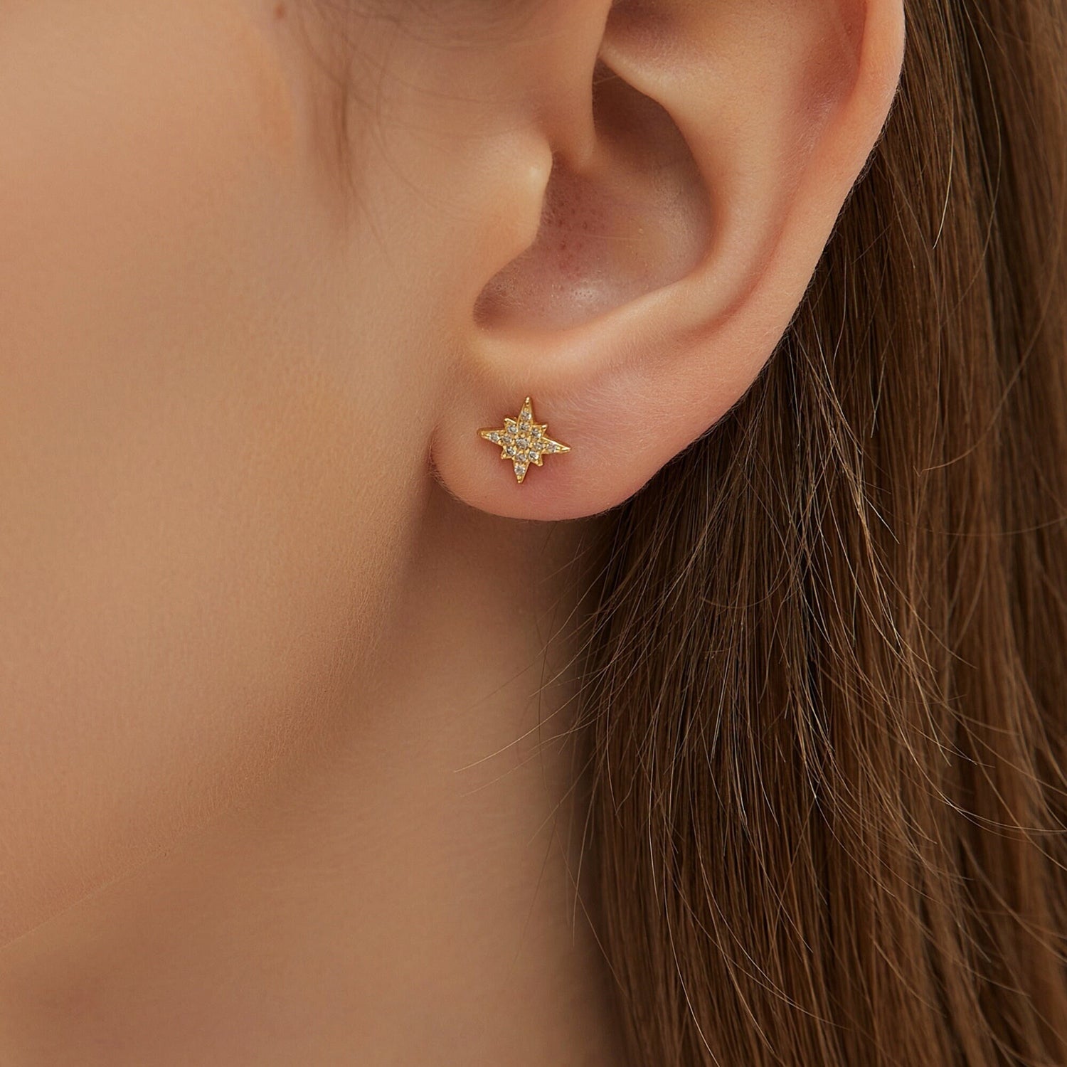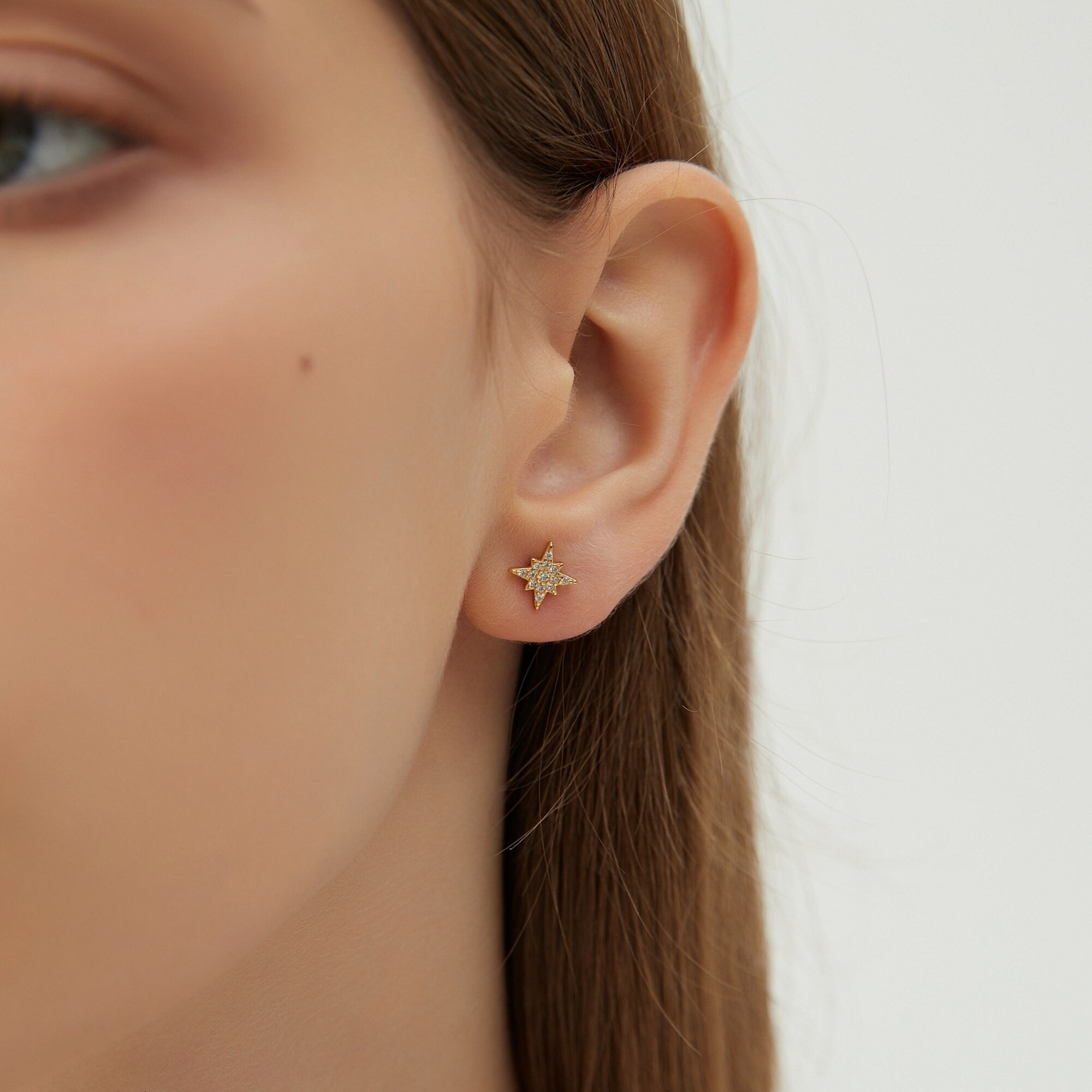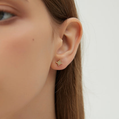 CZ North Star Studs Earrings, Minimal Gold or Silver Star Tragus Earring, Birthday Gift for friends, "Stella" Earrings