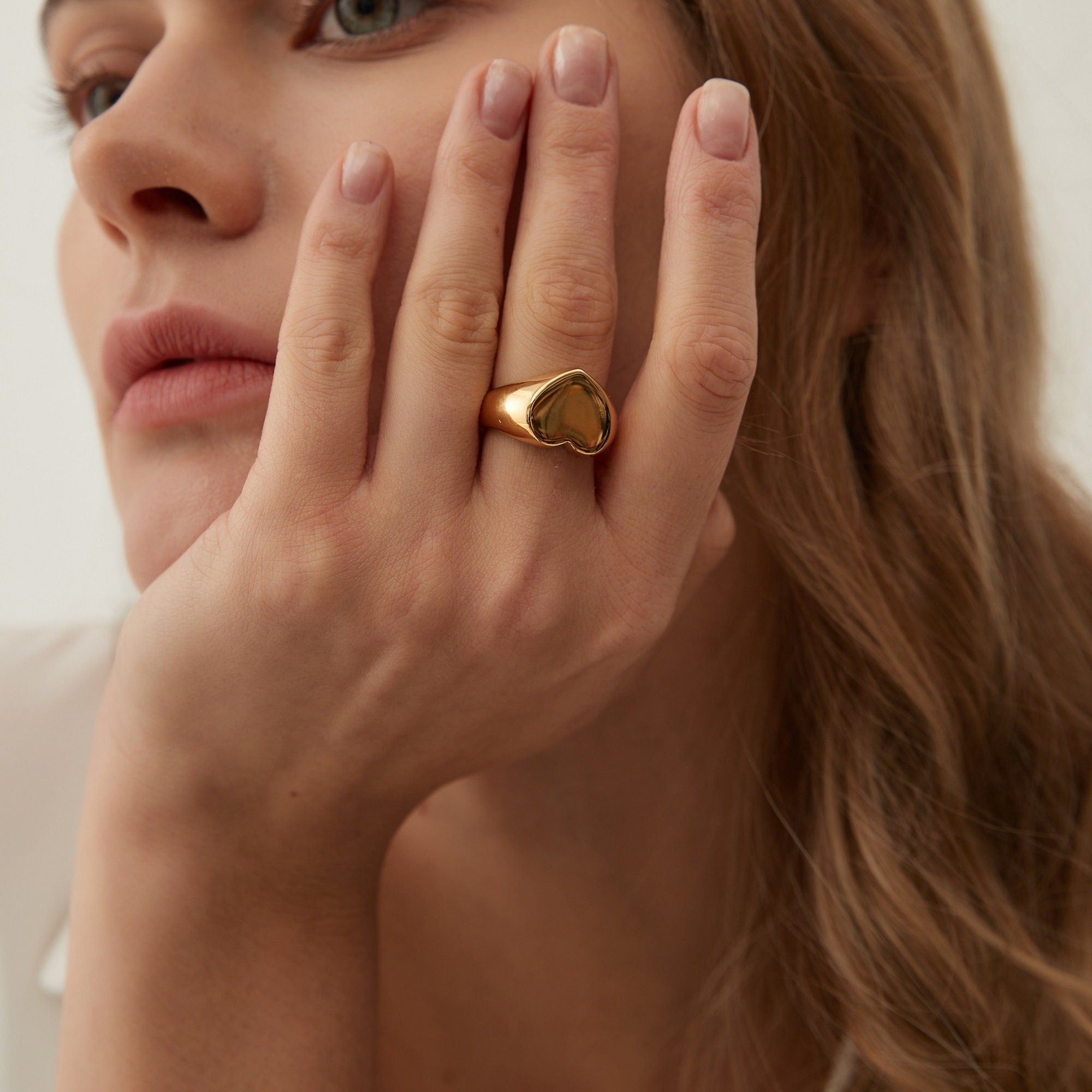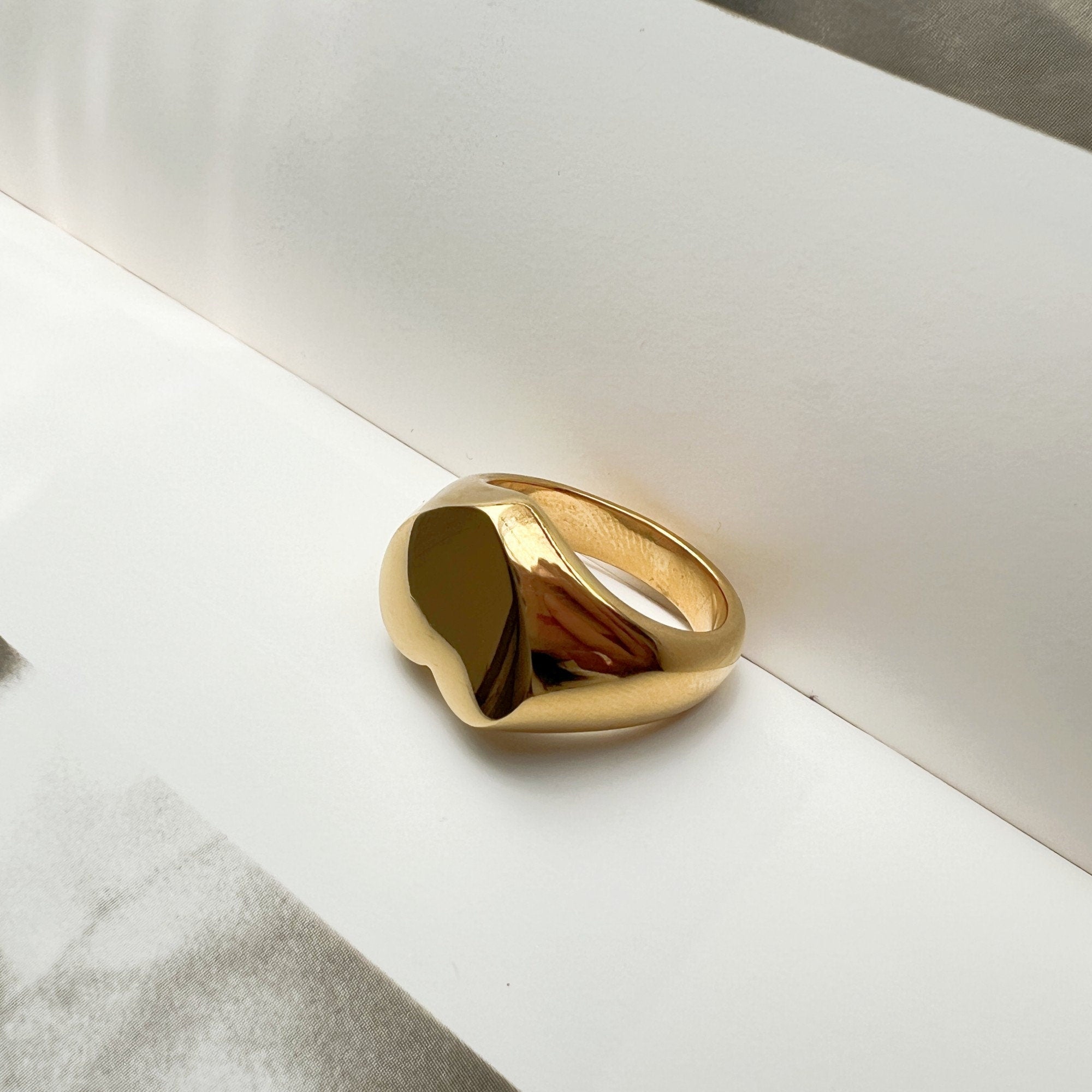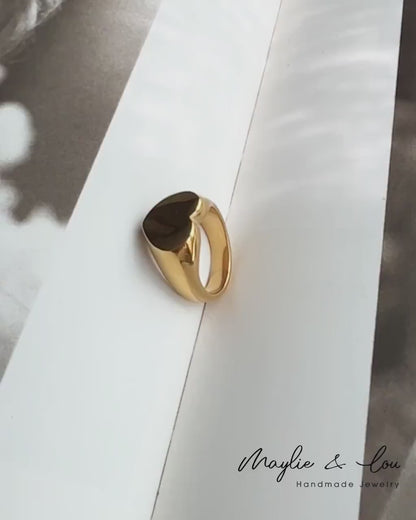 Gold Chunky Heart Signet Ring, Statement Gold Heart Pinky Stacking Ring