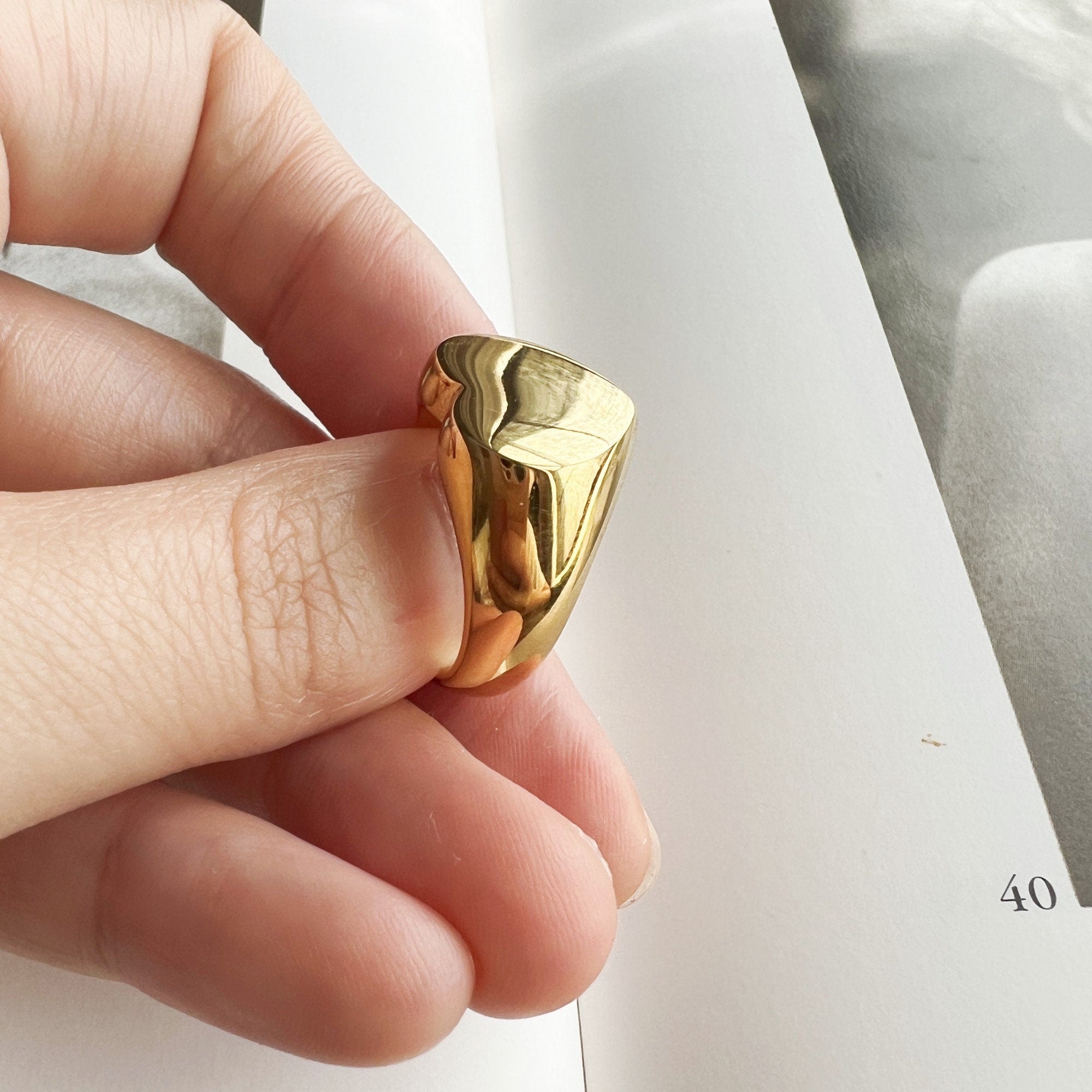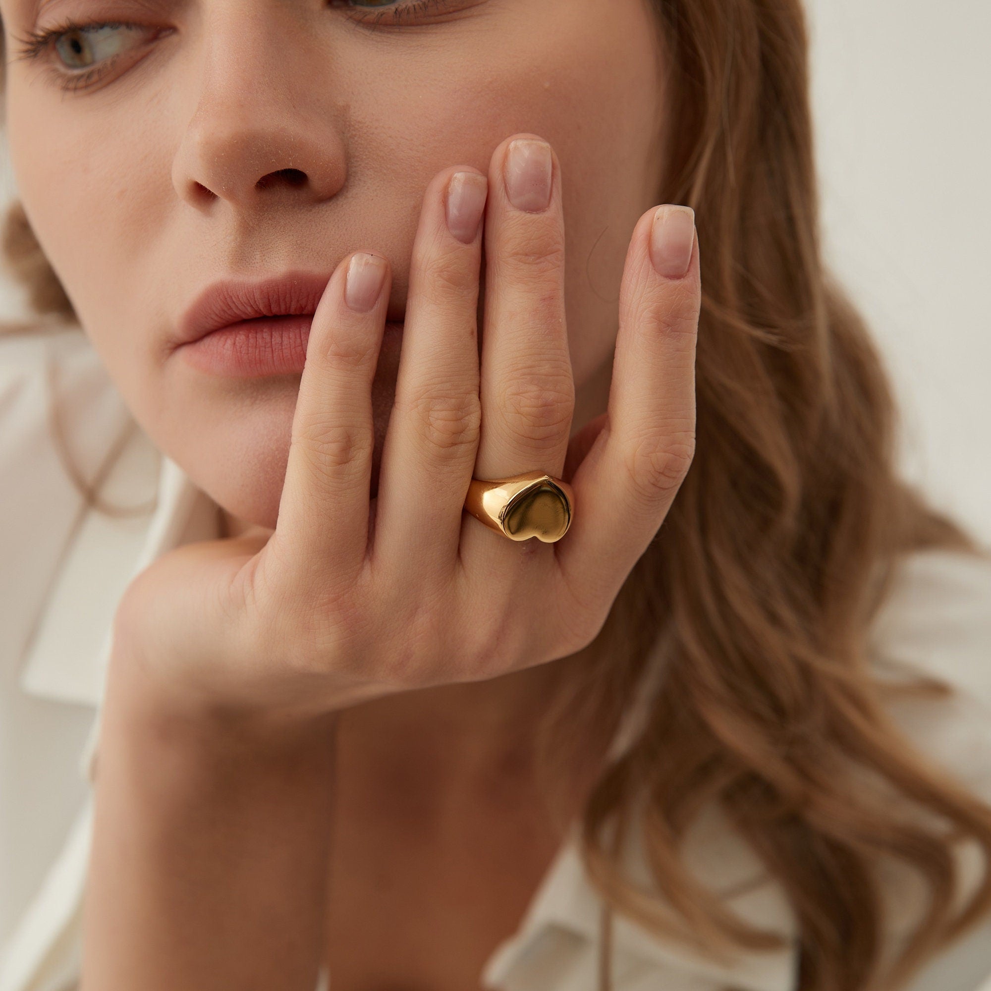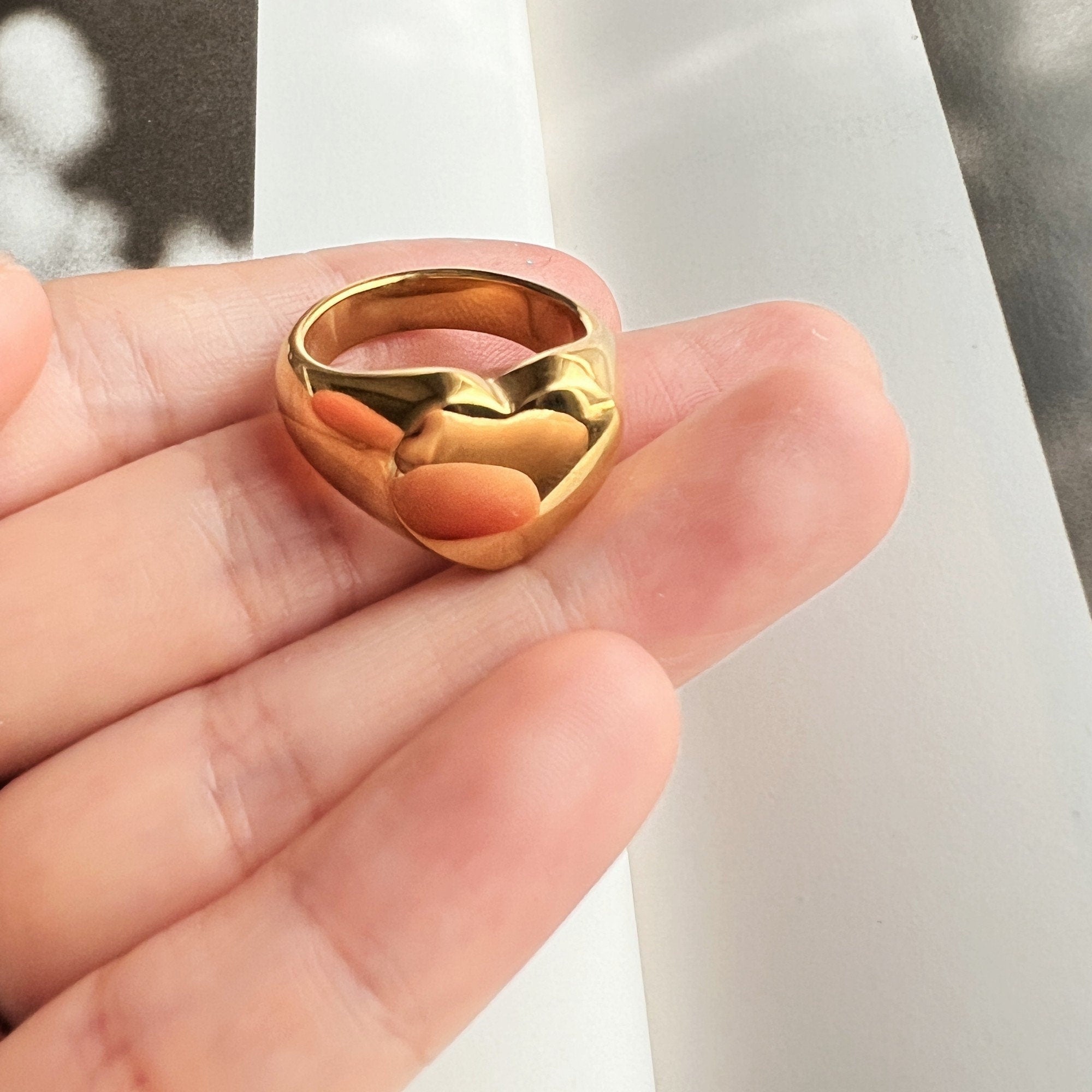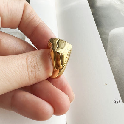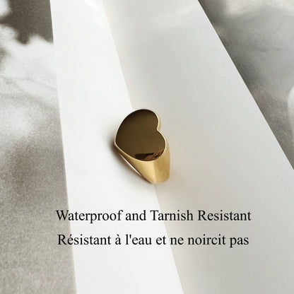 Bague Chevalière Femme Cœur Epaisse Plaqué Or Style Minimaliste