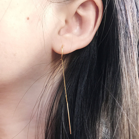 Dainty and minimal, these pair of long threader earrings made in gold plated 18k 925 sterling silver. Gorgeous earrings perfect to worn alone for a minimal look. Everyday earrings perfect for any