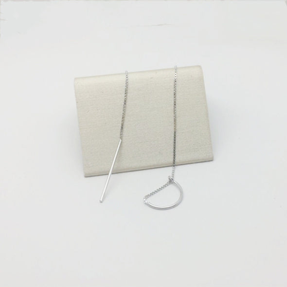 Gold Long Threader Earrings, Dainty Chain Earrings, Pull Through Earrings, Bar Ear Threader String Earrings, Circle Threader Dangle Earrings